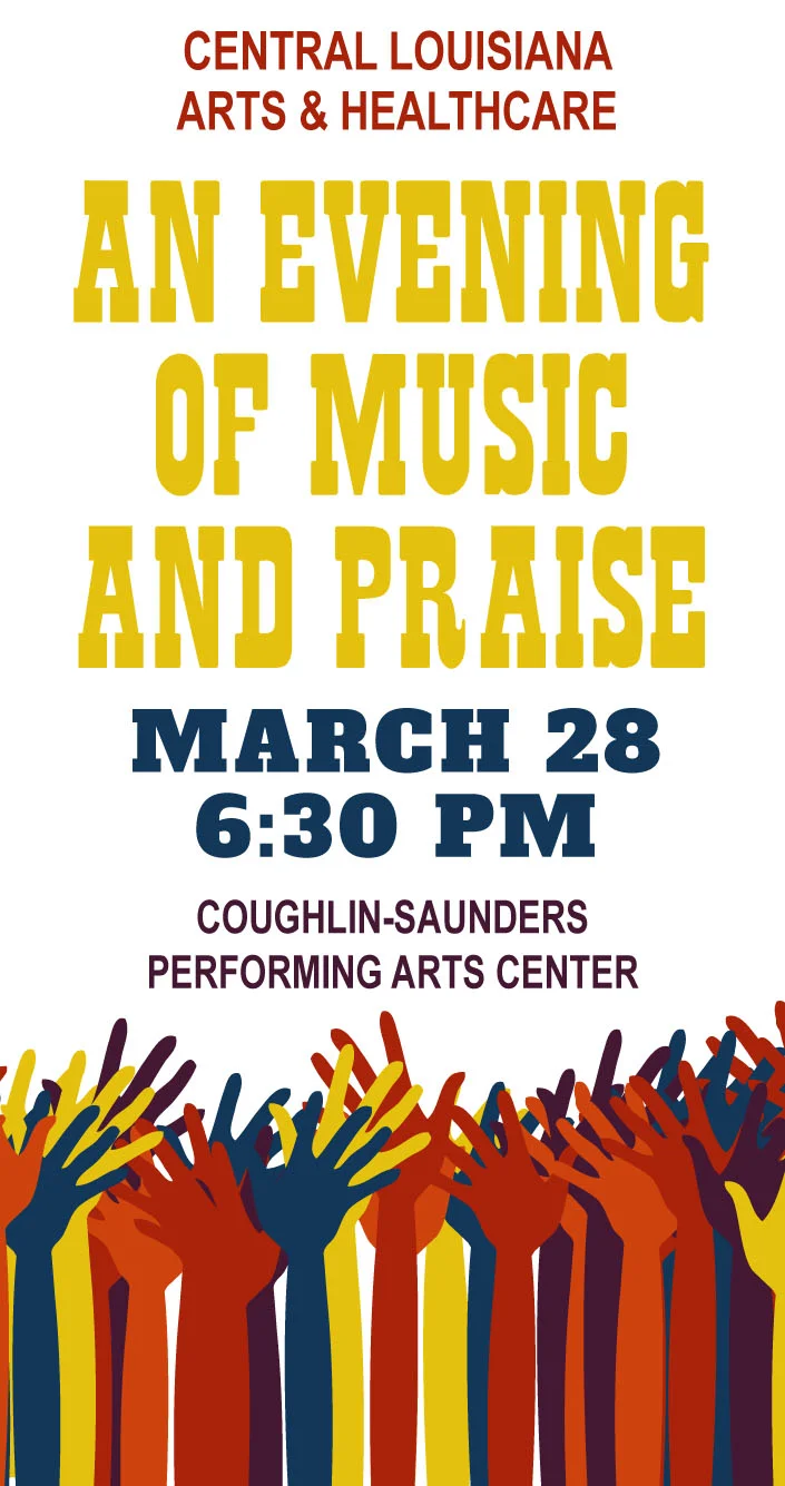Cenla Christian Worship Tour presents An Evening of Music and Praise to benefit Arts & Healthcare, Inc. This event will take place on Saturday, March 28 at 6:30 PM at Coughlin-Saunders Performing Arts Center in downtown Alexandria. It will feature some of the most popular local and regional praise musicians – Josh Blakesley, Octavia, DC Sills, Sonz of Redemption, and special guests, Bros. 4 from Jackson, MS. All performers will have CDs for sale. We will also be auctioning off several artistically decorated guitars (by local artists) during intermission. All proceeds from this event will go to Arts & Healthcare, Inc., a local non-profit organization whose mission is to provide innovative arts experiences in healthcare settings to help bring comfort and healing to patients, their caregivers and medical staff.